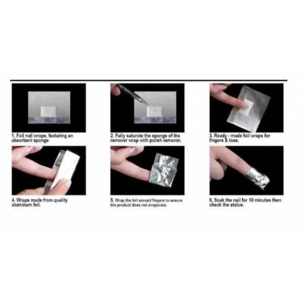 - Mode d'emploi : Imbiber l'éponge, envelopper le doigt, laisser poser 10 minutes, nettoyer Les Bandes d'Aluminium pour Faux Ongles Acryliques sont parfaites pour une utilisation professionnelle, garantissant un retrait facile et efficace du vernis.