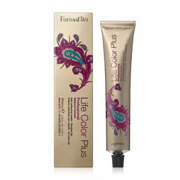 Coloration permanente Life Color Plus de Farmavita, large palette de nuances. Enrichi en extrait d'huile de graines de Tournesol, Life Color Plus apporte brillance intense, résistance et tenue de la couleur. La couverture des cheveux blancs est excellente (100%). Avec Life Color Plus c'est la fin des sensations de picotement et des odeurs désagréables.