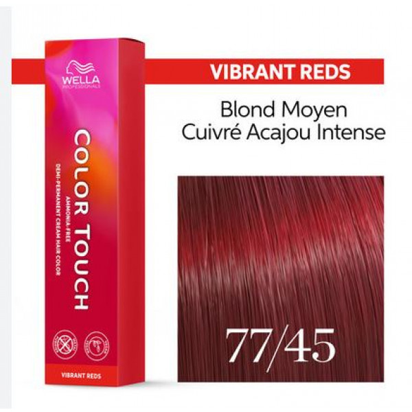 Coloration Semi-Permanente Vibrant Reds - Blond Moyen Cuivré Acajou Intense 77/45 - Wella Professionals Color Touch - 60ml