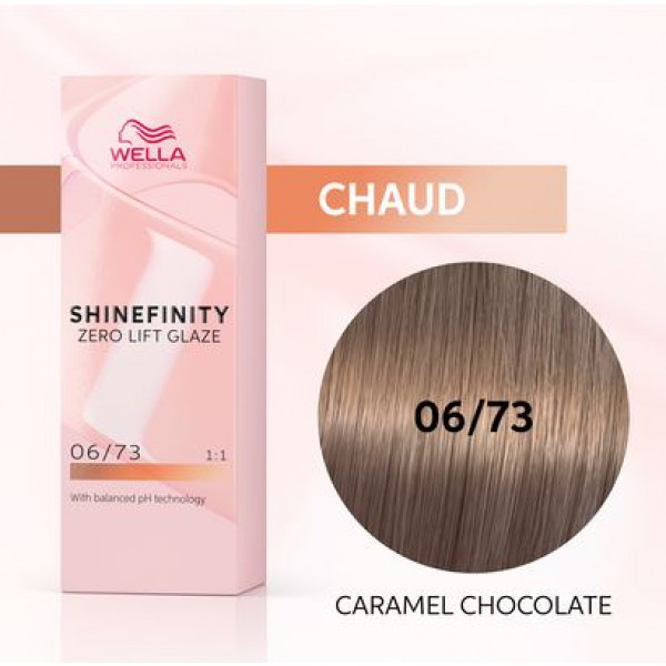 Coloration gloss Shinefinity 06/73 caramel chocolate, par Wella Professionals. Ressentez la brillance au bout de vos doigts avec les colorations ultra glossy Shinefinity !